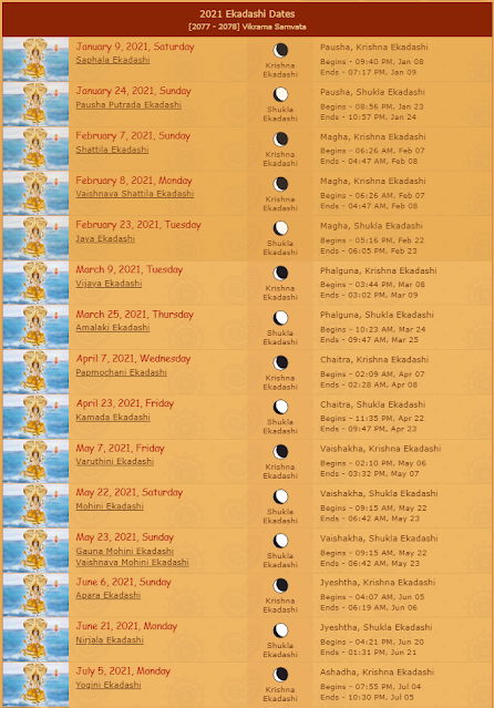 | Ekadashi Vrat List -2021 (a) from drikpanchang.com |